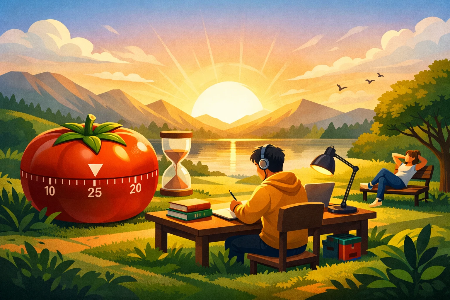 Pomodoro Technique adalah metode manajemen waktu yang membantu pelajar belajar lebih fokus tanpa kelelahan mental. Dengan membagi sesi belajar ke dalam interval singkat dan terstruktur, teknik ini efektif mengatasi distraksi, menunda-nunda, serta risiko burnout yang sering dialami saat belajar mandiri.